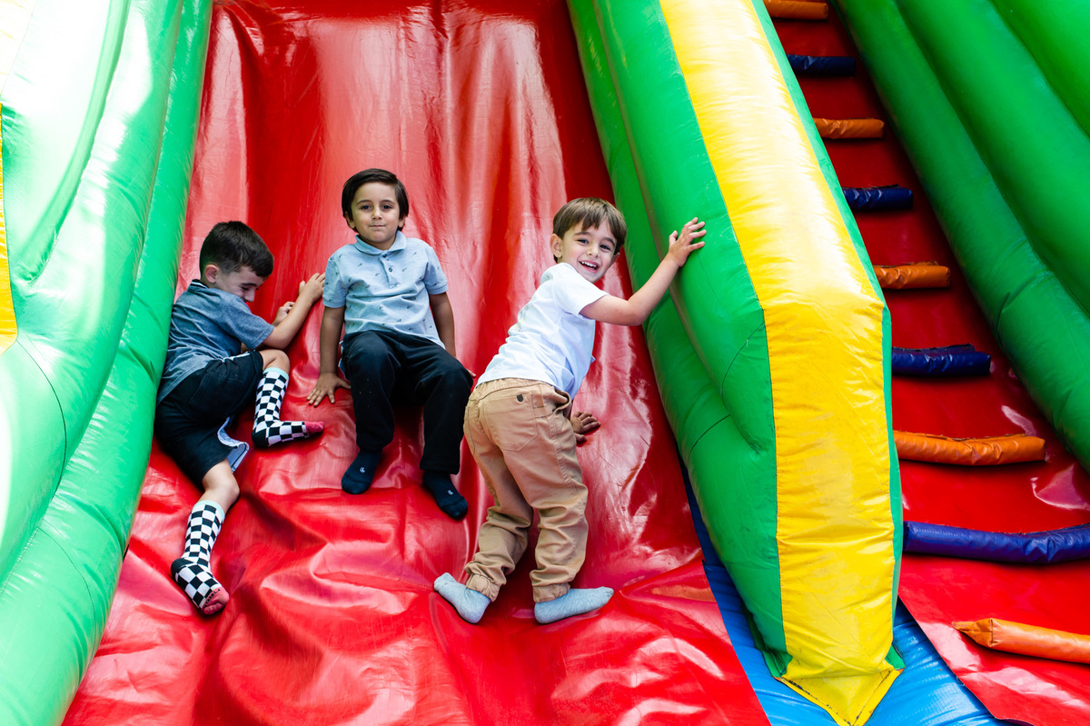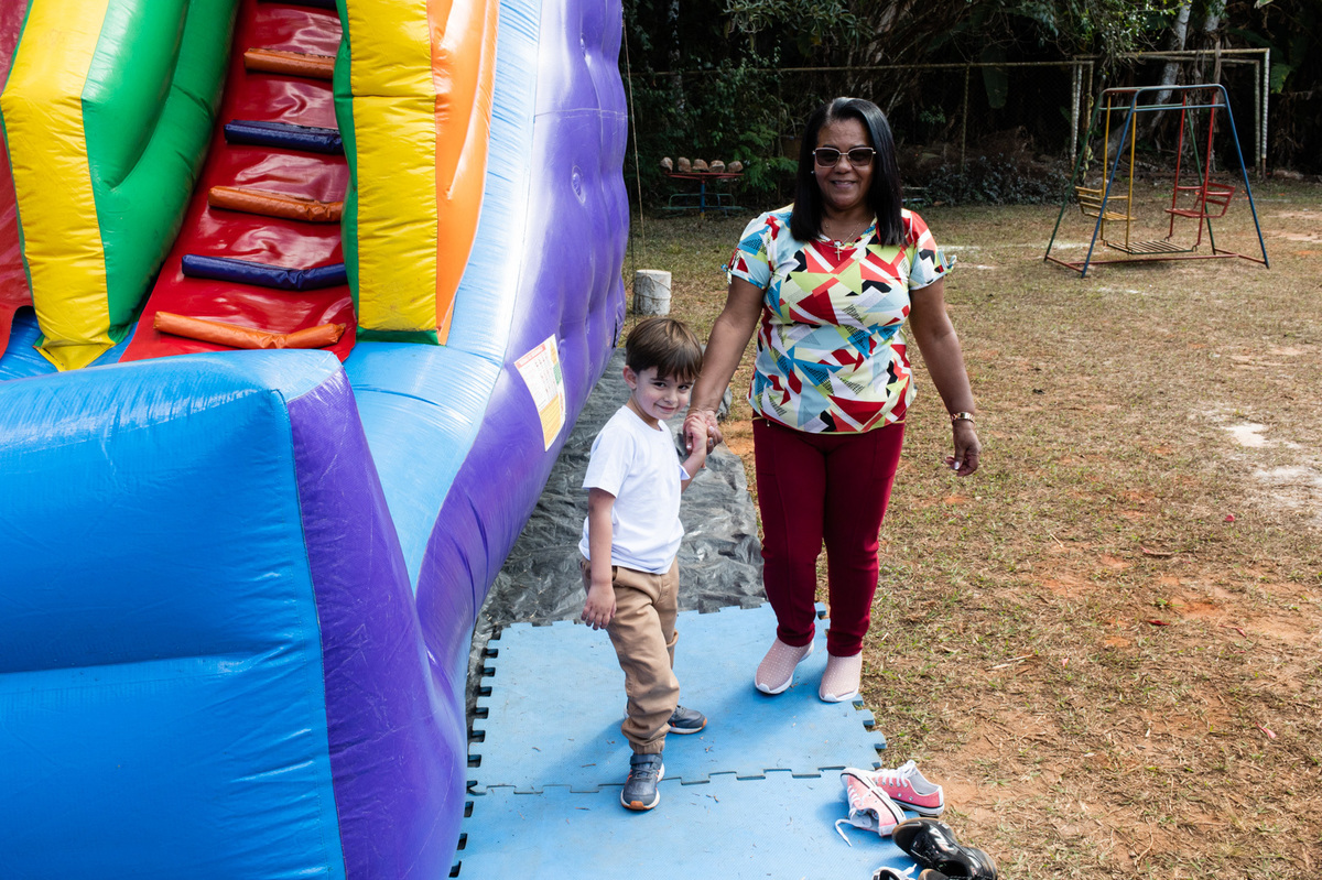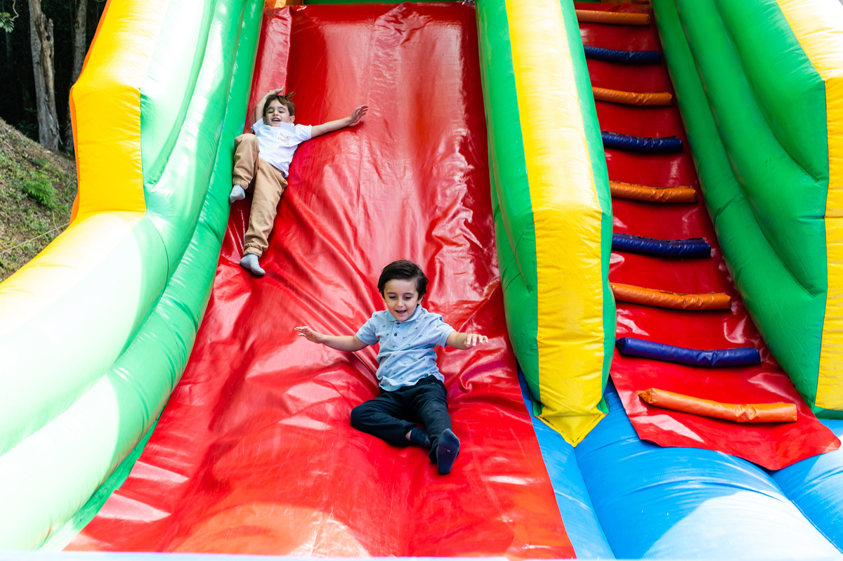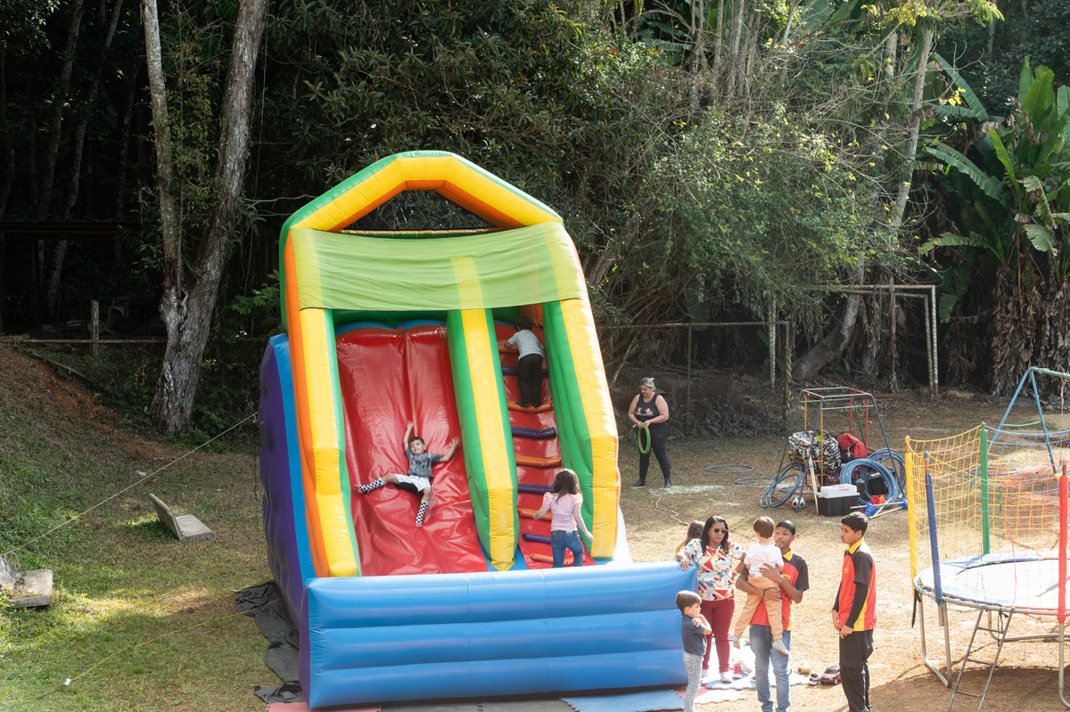 Apesar do friozinho, o dia estava lindo e cheio de pessoas maravilhosas. As crianças se divertiram muito com diversas brincadeiras, enquanto os adultos aproveitavam as bebidas, música boa e a deliciosa carne assada na brasa. Todos estavam reunidos para comemorar o quarto aniversário do Lucas, e de quebra, os 50 anos do pais dele.