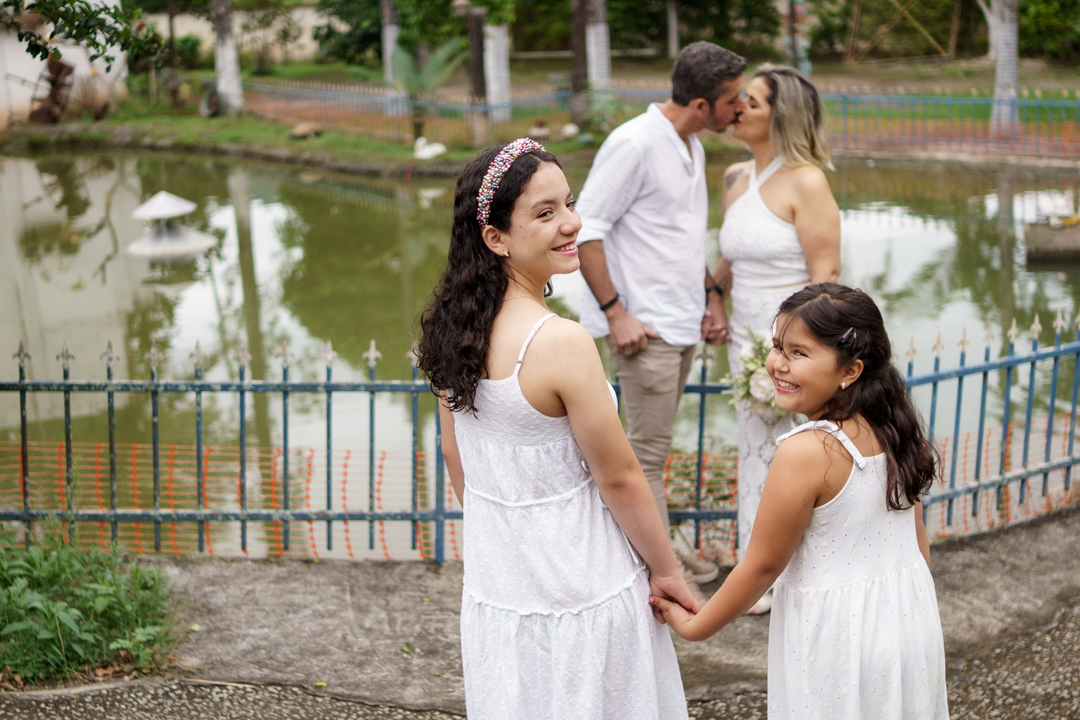 A Lailla e o Junio têm uma história linda, cada um já com uma filha, e hoje unindo não só a vida, mas também as famílias. A pequena Eva, filha da Lailla, é daquelas que não passa despercebida. Fala mais que papagaio – e com cada pérola que só Jesus na causa! Já a Betina, filha do Junio , é mais na dela, tranquila, observadora, mas com aquele jeitinho doce que conquista.